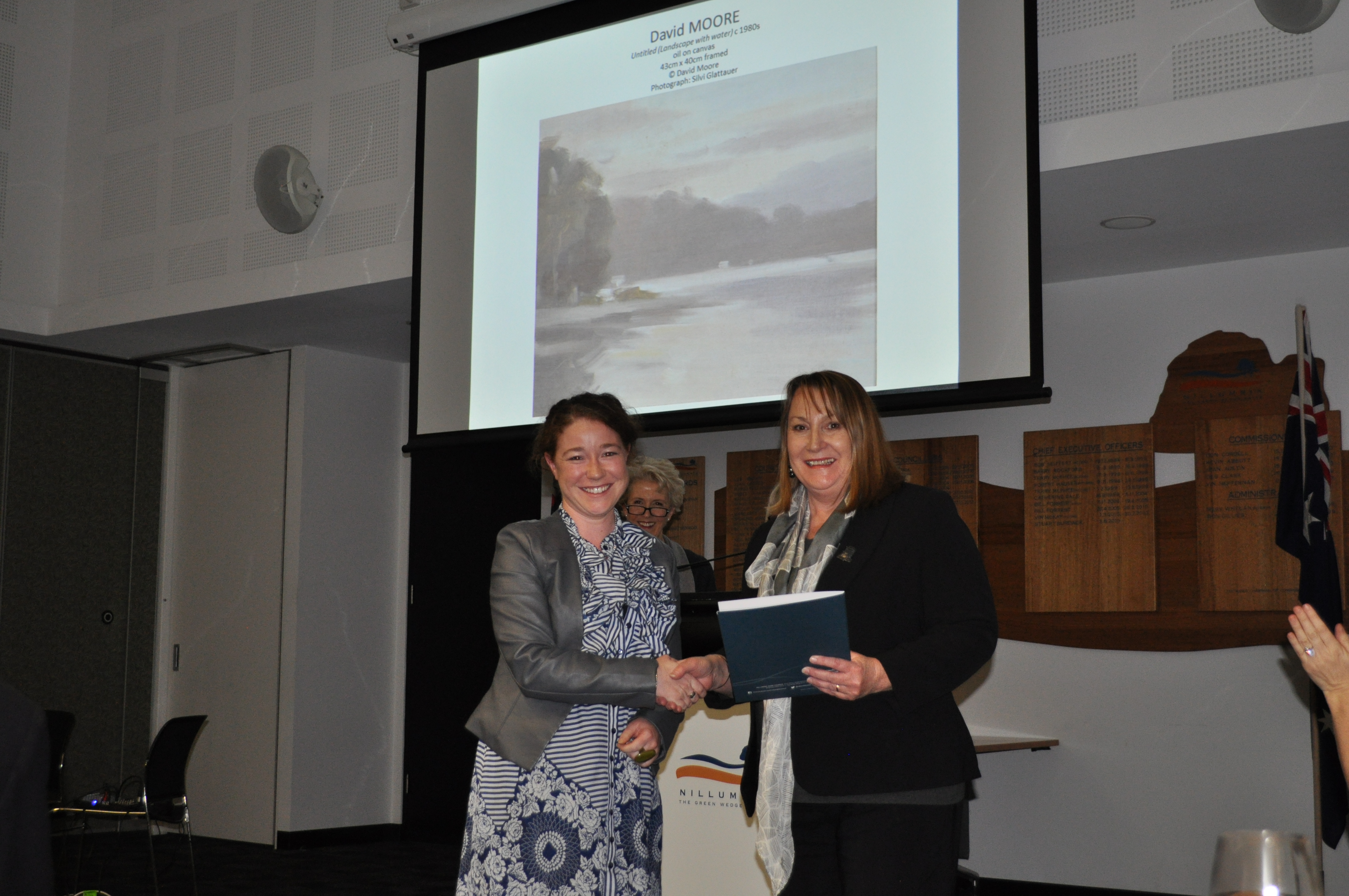 The awards evening was beautifully run. There was a small gallery of the work which was a great opportunity for some of the writers to see the art works for the first time (most of us viewed the works online). All of the poems were read by actress Debra Lawrance (Home and Away, Please Like Me) with images of the artwork projected behind. The awards were presented by Nillumbik Shire Council Mayor Cr Helen Coleman.